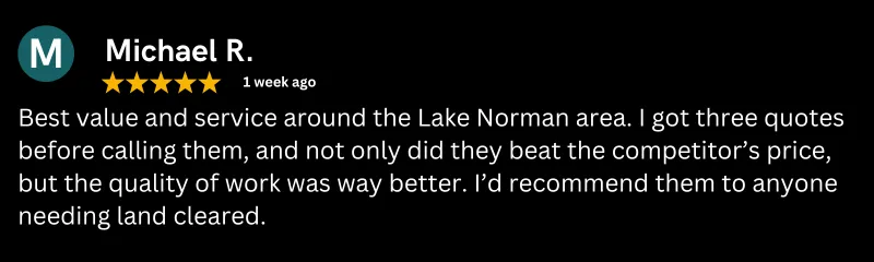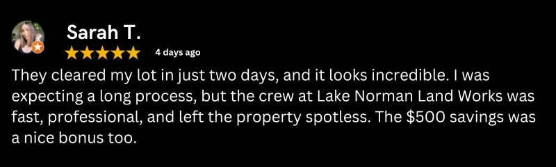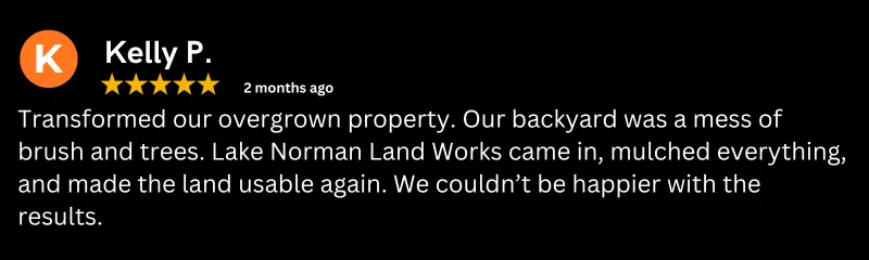 At Lake Norman Land Works, we make land clearing, demolition, and mulching simple, safe, and affordable. Backed by years of hands-on experience and a reputation for treating every property like our own, we’ve become the trusted choice for property owners across the Lake Norman area.